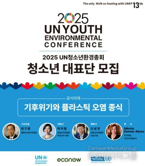 시민행정신문 강갑수 기자 | 성남시청소년청년재단 판교유스센터와 환경단체 에코나우는 오는 11월 15일부터 16일까지 이틀간 성남 국립국제교육원에서 열리는 ‘2025 UN청소년환경총회’에 참가할 국내외 청소년 대표단 300명을 10월 13일까지 모집한다. 이번 총회는 성남시청소년청년재단 판교유스센터와 환경단체 에코나우가 공동 주관하며, 반기문 전 UN사무총장과 브라질 대사 등 주요 인사가 참석한다.