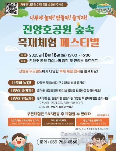 시민행정신문 강갑수 기자 | 진주시는 오는 10월 18일 오후 1시부터 4시까지 진양호공원 다이나믹 광장과 진양호우드랜드 일원에서 『나무야 놀자! 만들자! 즐기자! 진양호 공원 숲속 목재체험 페스티벌』을 개최한다.
