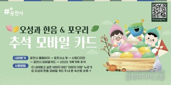 시민행정신문 강갑수 기자 | 포천시는 지난 1일 민족 최대 명절 추석을 맞아 시민들이 감사와 따뜻한 마음을 손쉽게 전할 수 있도록 ‘추석 모바일 카드’를 무료 배포했다.