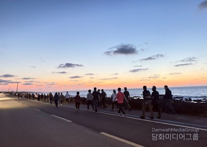 시민행정신문 기자 | 서귀포시는 일상생활 속 1일 7천 보 걷기 활성화를 위하여 11일 새벽 5시 신산리 마을주민들과 함께하는 '힐링 UP! 혼디모영 걸을락(樂)' 신산마을걷기를 운영했다.