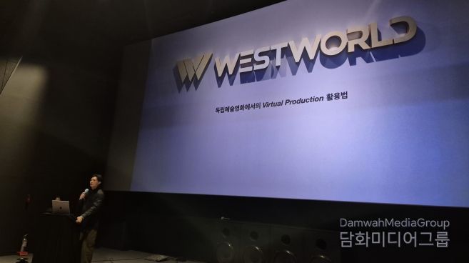 두 번째 세션에서 버추얼프로덕션 전문기업 웨스트월드의 허동혁 본부장은 실제 독립예술영화 제작 현장에서 버추얼프로덕션을 지원하고 촬영해 온 사례를 중심으로 발표를 진행했다.