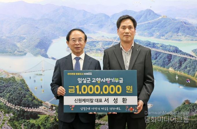 시민행정신문 강갑수 기자 | 전주시 소재 화학제품 유통기업 신원케미칼의 서성환 대표가 지난 5일 임실군청을 방문해 고향사랑기부금 100만 원을 기탁했다.