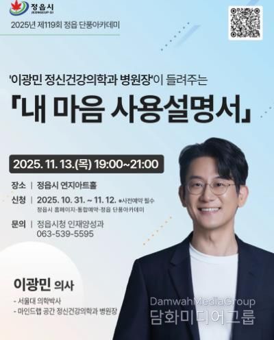 시 관계자는 “빠르게 변화하는 사회 속에서 시민들의 마음 건강은 무엇보다 중요하다”며 “이번 강연이 시민들이 자신을 이해하고 스스로를 돌보는 계기가 되길 바란다”고 전했다.