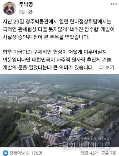 시민행정신문 강갑수 기자 | 주낙영 경주시장이 최근 자신의 사회관계망서비스(SNS)에 “감포에 건립 중인 문무대왕과학연구소가 향후 핵추진 잠수함 추진체 기술의 기반이 될 수 있다”고 게시했다.