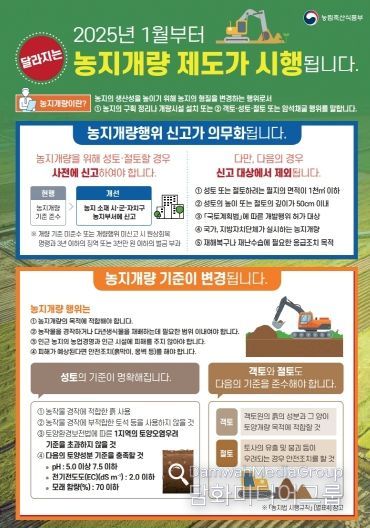 한열 농업기술센터소장은 “농지개량 사전 신고 없이 절·성토를 진행하다가 위반 사항이 적발될 경우 원상회복명령 등 행정처분과 함께 형사처벌을 받을 수 있다.”라며, “농지 절·성토를 계획 중인 농업인은 반드시 사전 신고 절차를 준수해 주시길 바란다.”라고 말했다.