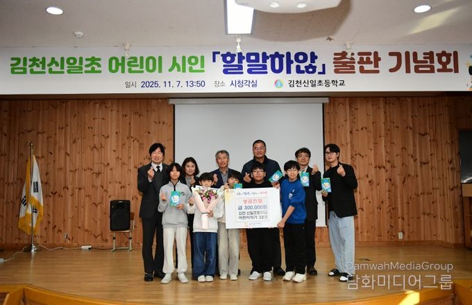 시민행정신문 강갑수 기자 | 김천복지재단(이사장 배낙호)은 지난 7일, 김천 신일초등학교(교장 채득원) 어린이 작가 22명으로부터 시집 『할말하않』 출판 수익금 성금 30만 원을 전달받았다고 밝혔다.