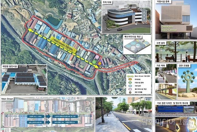 시는 주촌면 덕암산단의 고질적인 문제인 주차난, 보행안전 위험, 휴식공간과 편의시설 부족 등을 동시에 해결하기 위해 2035년까지 총 163억2,000만원(국비 81.6억, 지방비 81.6억)을 투입해 주차타워 건립, 가로정비 보행환경 개선, 수변쉼터 조성 등 다양한 기반시설을 대폭 정비하고 부족한 지원시설, 근린생활시설을 확충해 쾌적한 산업단지 환경을 조성한다.