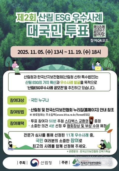 이번 공모전의 대국민 투표는 오는 19일 18시까지 온라인으로 진행되며, 한국산지보전협회 홈페이지 내 배너를 통해 참여할 수 있다.