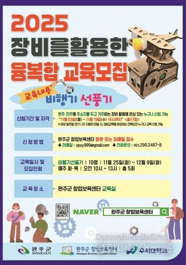 시민행정신문 강갑수 기자 | 완주군 창업보육센터가 ‘2025년 장비를 활용한 융복합 교육’ 참가자를 오는 19일, 오후 4시까지 모집한다.