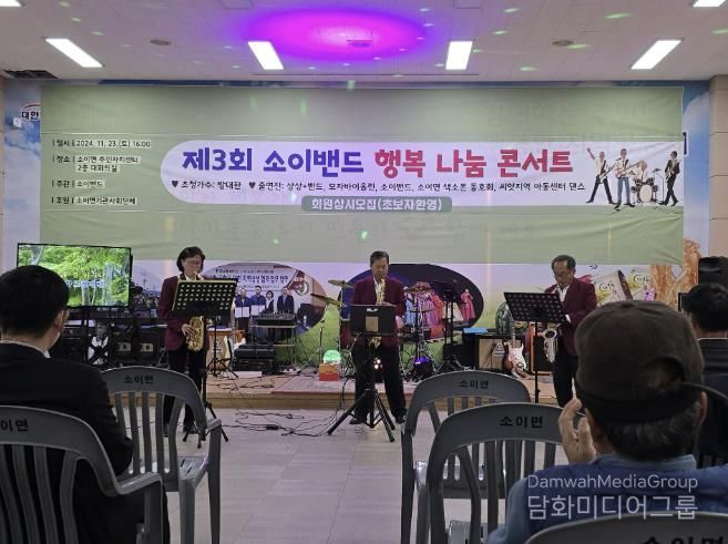 시민행정신문 기자 | 소이면 대표 음악 동아리인 소이밴드가 이달 29일 오후 4시 소이면 주민자치센터 대회의실에서 ‘제4회 소이밴드 행복 나눔 콘서트’를 개최한다고 밝혔다.