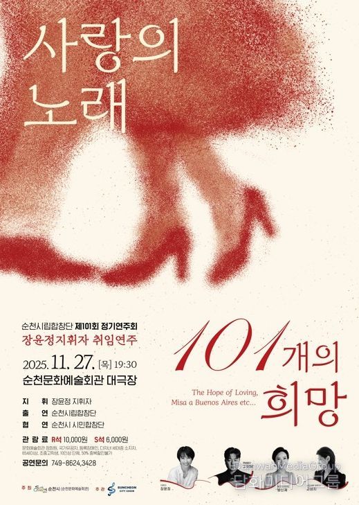 시민행정신문 강갑수 기자 | 순천시는 오는 27일 저녁 7시 30분, 순천문화예술회관 대극장에서 순천시립합창단 제101회 정기연주회 '사랑의 노래, 101개의 희망'을 개최한다고 밝혔다.