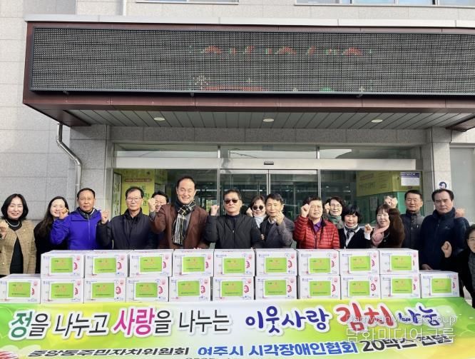 시민행정신문 강갑수 기자 | 여주시 중앙동 주민자치위원회는 26일 행정복지센터에서 여주 시각장애인협회에 김치 20박스 전달식을 진행했다.