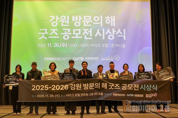 포럼 종료 후에는 지난 9~10월 강원의 매력을 담은 굿즈를 발굴하기 위해 개최한 “2025-2026 강원 방문의 해 굿즈 공모전 시상식”이 진행됐다. 강원의 특별한 매력을 담은 굿즈를 제작한 7팀이 시상대에 올랐으며, 그 중 힐링형 감성 굿즈인 ‘숨, 강원의 가리왕산(운기석 천연 디퓨저 세트)’이 영예의 대상을 차지했다.