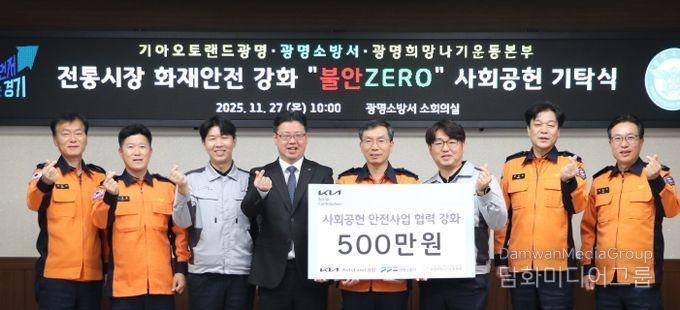 이번 기탁은 겨울철 화재위험이 증가하는 시기, 취약계층 주거지 및 광명전통시장 등 다수이용시설의 전기화재 예방을 지원하기 위해 마련됐다. 기아오토랜드는 총 500만원 상당의 자동소화패치 2천 개를 광명희망나기본부를 통해 광명소방서에 기부했으며 기부된 자동소화패치는 분·배전반 등에서 발생하는 초기 화재를 자동으로 감지·진압하는 물품이다.