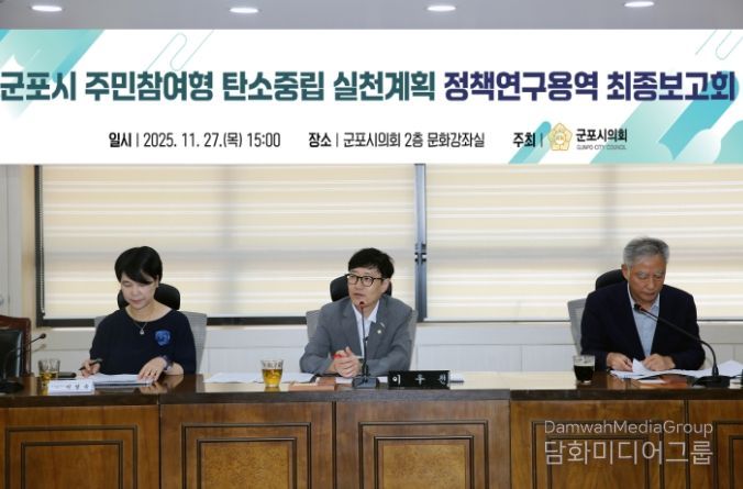 이번 보고회는 군포시 탄소중립정책의 기반을 강화하고, 시민 참여가 지속적으로 확장되는 실천 체계를 마련하기 위해 추진된 연구성과를 공유하는 자리로 마련됐다.
