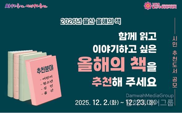 시민행정신문 강갑수 기자 | 울산도서관이 ‘2026년 울산 올해의 책’ 사업의 첫 단계로 시민 추천 도서 공모를 시작한다.