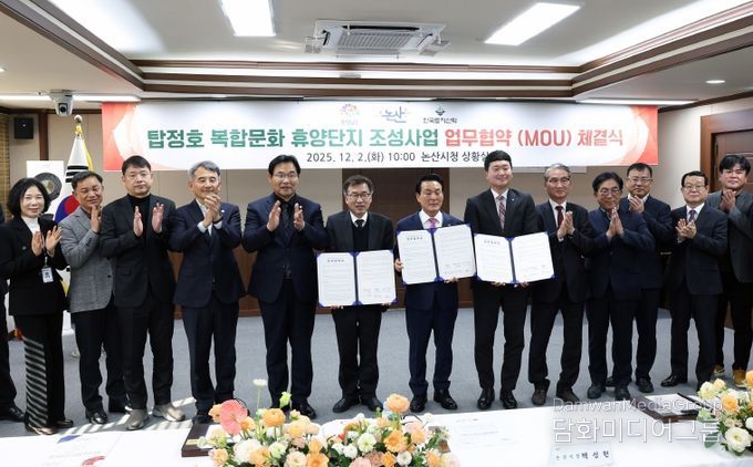 도는 2일 논산시청 상황실에서 전형식 도 정무부지사, 백성현 논산시장, 김정호 ㈜한국토지신탁 신탁사업2본부장이 ‘탑정호 복합문화 휴양단지 조성’ 업무협약을 체결했다고 밝혔다.