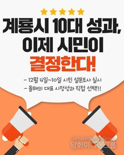 시민행정신문 강갑수 기자 | 계룡시는 12월 4일부터 10일까지'2025 계룡시를 빛낸 10대 성과'시민 설문조사를 실시한다고 밝혔다.