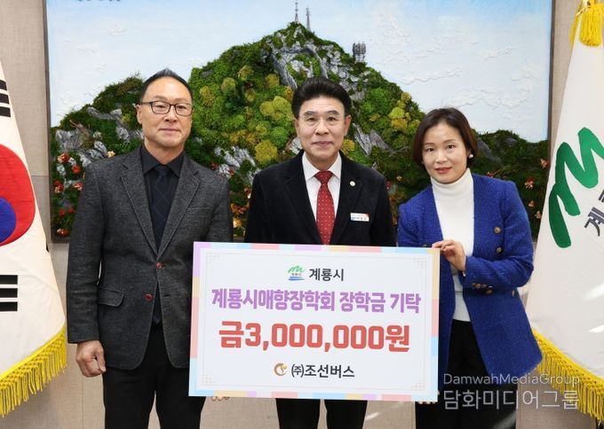 시민행정신문 강갑수 기자 | ㈜조선버스(대표 조선)는 3일 계룡시청에서 열린 장학금 기탁식에서 계룡시 지역인재 육성 등 교육 발전을 위해 장학기금 300만원을 기탁했다.