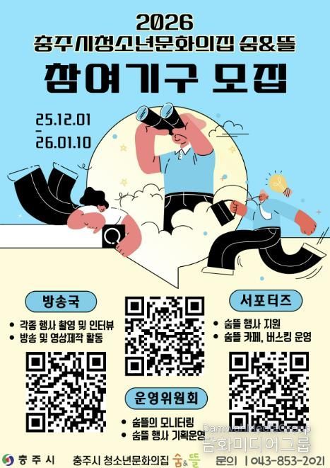 시민행정신문 강갑수 기자 | 충주시청소년문화의집 숨&뜰은 2026년을 함께할 청소년 참여기구 신규부원을 모집한다고 4일 밝혔다.
