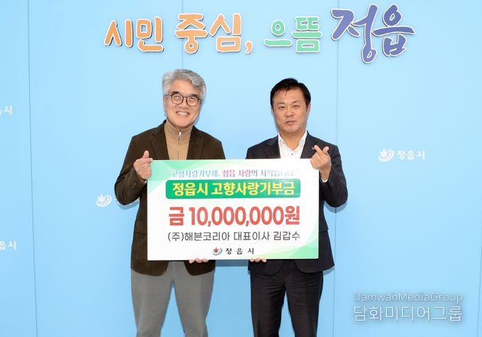 지난 5일 ㈜해븐코리아 김갑수 대표가 정읍시청을 방문해 고향사랑기부금 1000만원을 기탁하며 지역사회에 훈훈함을 더했다.