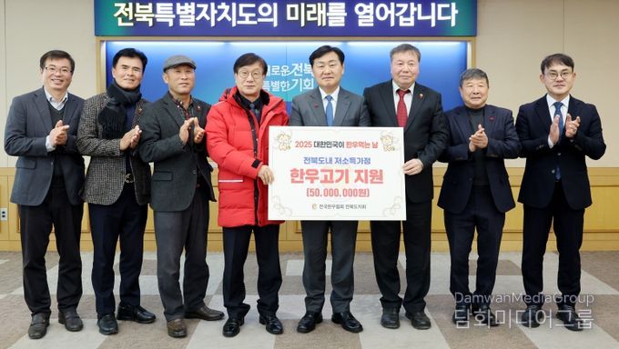 시민행정신문 강갑수 기자 | 전북특별자치도는 8일 도청에서 (사)전국한우협회 전북도지회가 도내 저소득층을 위해 5,000만원 상당의 한우고기를 전북사회복지공동모금회에 기탁했다고 밝혔다.