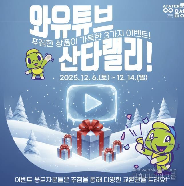 시민행정신문 강갑수 기자 | 음성군은 ‘와유튜브 산타랠리 이벤트’를 이달 14일(23시)까지 진행한다고 밝혔다.