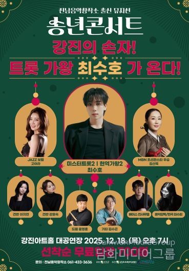 특히 하이라이트는 국악 크로스오버 버전으로 새롭게 편곡된 ‘강진군민의 노래’ 제창 순서. 익숙한 멜로디에 현대적인 감각을 더해, 600여 명의 관객이 한 목소리로 노래하며 2025년을 힘차게 마무리하고 희망찬 새해를 다짐하는 감동적인 순간이 연출될 것으로 기대되고 있다.