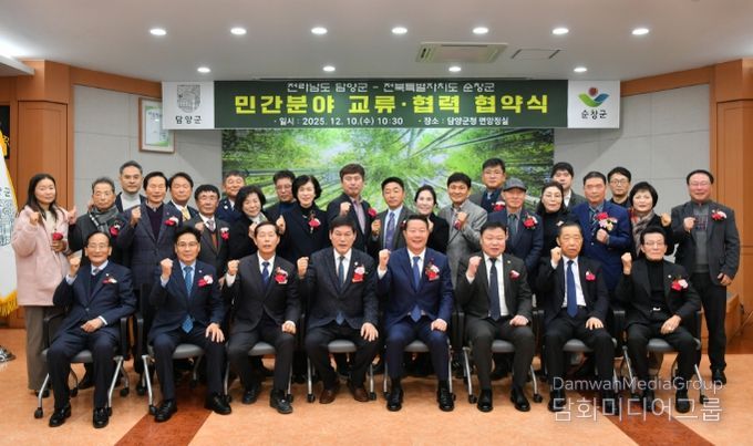 시민행정신문 강갑수 기자 | 전라남도 담양군과 전북특별자치도 순창군이 10일 담양군 면앙정실에서 민간분야 교류와 협력 강화를 위한 협약을 체결했다.