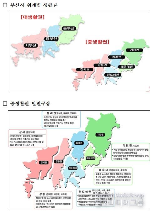 2040 부산도시기본계획상 ▲‘대생활권’은 서·중·동부산권으로 ▲그 아래 ‘중생활권’은 강서·강동·동래·원도심·기장·해운대권으로 나뉜다.