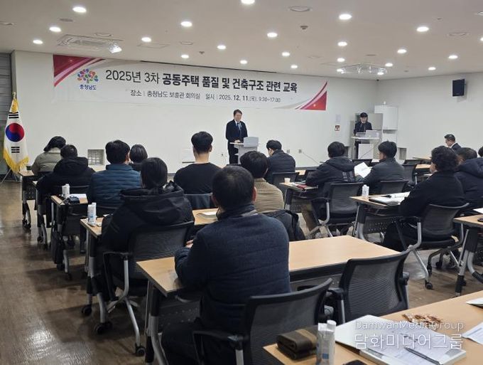 도는 11일 충남보훈관에서 충남지역건축안전센터 주관으로 감리업무 종사자, 현장 실무자, 도·시군 공무원 등 110여 명이 참석한 가운데 ‘2025년 제3차 공동주택 품질 및 구조관련 교육’을 실시했다.
