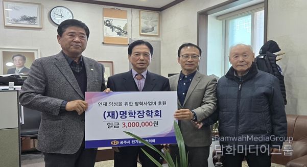 시민행정신문 강갑수 기자 | 연말이 되면서 우리 주변에 어려운 이웃을 위한 성금 모금이 한창인 가운데 공주시 전기공사협의회(회장 윤경수)는 지역의 인재 양성을 위한 장학사업비 300만원을 (재)명학장학회에 전달했다.