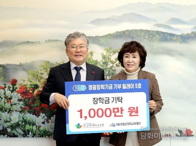 시민행정신문 강갑수 기자 | ㈜코리아반도체조명(대표 우태영)은 12월 10일 (재)영광군미래교육재단에 지역 인재 육성을 위한 장학기금 1,000만 원을 전달했다.