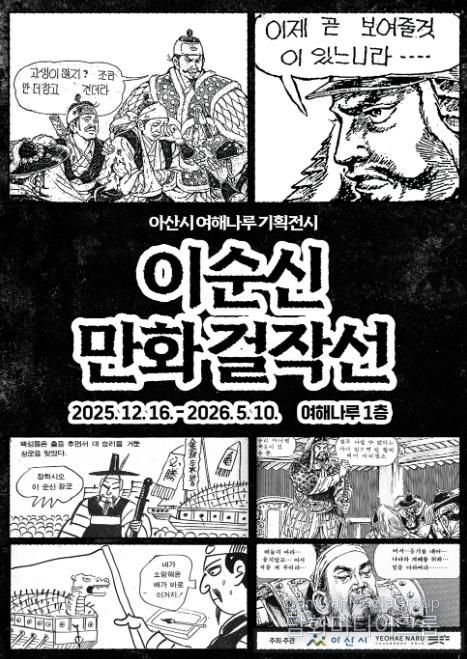 아산시 여해나루 ‘이순신만화걸작선’은 충무공 이순신 순국 제427주기를 기념하는 특별전으로 이번 달 16일부터 2026년 5월 10일까지 여해나루 1층 미디어아트홀에서 개최된다.