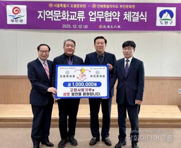 최귀옥 도봉문화원장 역시 “부안을 직접 방문해 교류하고 고향사랑기부로 마음을 전할 수 있어 뜻깊다”며 “이번 협약을 계기로 두 지역 문화원이 꾸준히 소통하며 상생의 폭을 넓혀가길 기대한다”고 전했다.