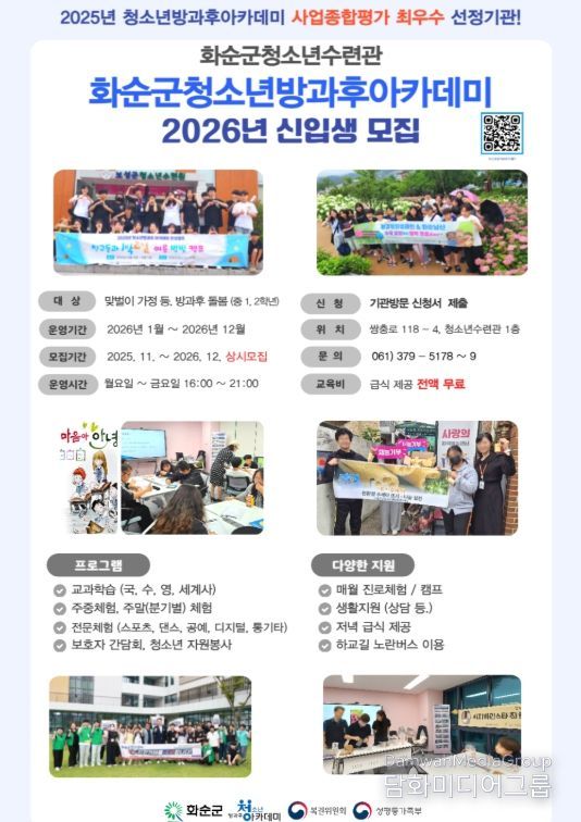 시민행정신문 강갑수 기자 | 화순군은 오는 19일부터 청소년수련관에서 방과후아카데미 신입생을 모집한다고 밝혔다.