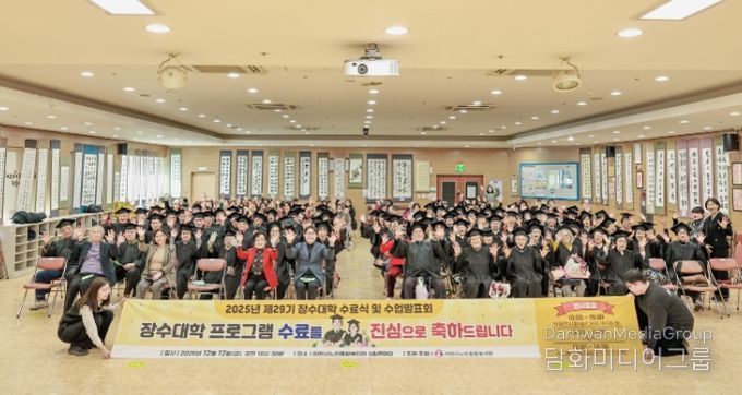 올해 장수대학에서는 4과목 이상 수강하고 출석률 70% 이상을 기록한 어르신 166명이 수료증을 받았다. 특히 최고령 수료자인 이경열 어르신(90세)이 대표로 수료증을 받아 평생학습의 모범을 보여주었으며, 모범상(윤영달)과 학업우수상 등 총 5명의 어르신에게 우수상이 수여됐다.