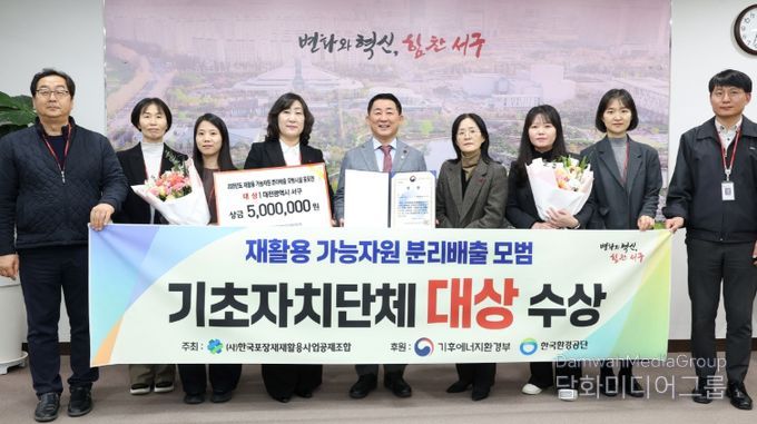 시민행정신문 김학영 기자 | 대전 서구는 22일 ‘2025년 재활용 가능 자원 분리배출 모범시설 공모전’ 기초자치단체 부문에서 대전 자치구 최초로 대상(기후에너지환경부 장관상)을 받았다.