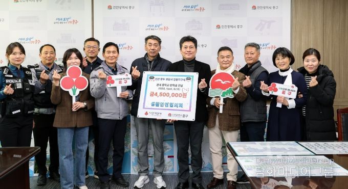 시민행정신문 강갑수 기자 | 인천시 중구는 지난 18일 인천중부경찰서 영종지구대(대장 홍만기)와 생활안전협의회(회장 이근철)가 중구청을 방문해 저소득층 중학생을 위한 장학금 450만 원을 기탁했다고 밝혔다.