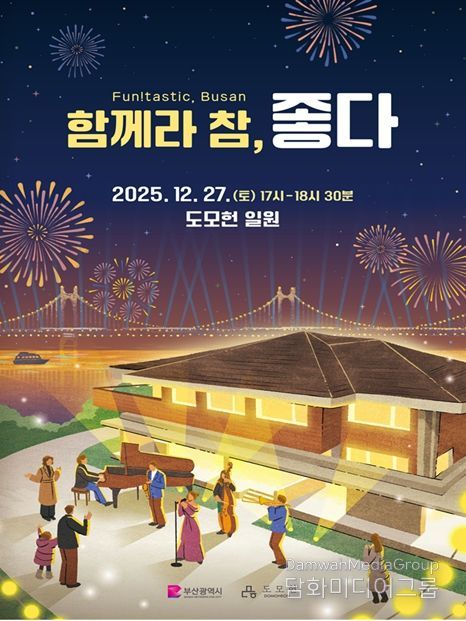 시민행정신문 강갑수 기자 | 부산시는 오는 12월 27일 오후 4시 30분, 시민을 위한 열린 복합문화공간 도모헌(구 시장관사) 다할 강연장에서 시민 누구나 함께 즐길 수 있는 연말 콘서트 '함께라 참, 좋다 펀!타스틱 부산(Fun!tastic Busan)'을 개최한다고 밝혔다.