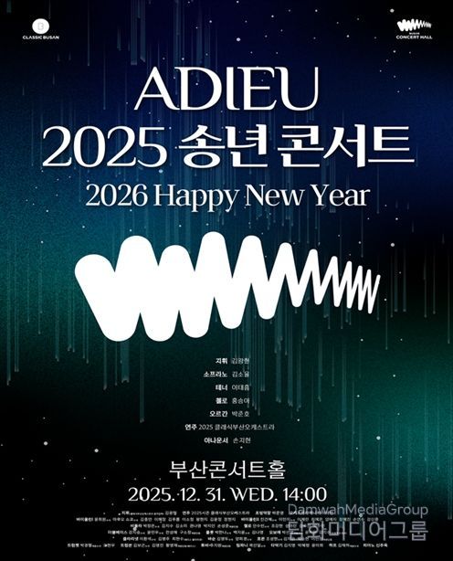 시민행정신문 기자 | 클래식부산은 2025년 부산콘서트홀의 성공적인 개관과 완성도 높은 첫해를 함께한 시민들에게 감사의 마음을 전하기 위해 오는 12월 31일 오후 2시 부산콘서트홀에서 '아듀(ADIEU) 2025 송년 콘서트'를 개최한다고 밝혔다.