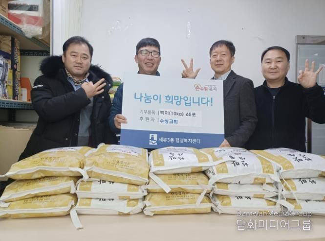 세류3동 행정복지센터는 지난 22일 수성교회가 관내 취약 계층에게 전달해달라며 백미(10kg) 65포를 기탁했다고 밝혔다. 수성교회는 매년 지역 내 어려운 이웃들을 위해 정기적으로 후원 물품을 전달하며 나눔 문화 확산과 지역 복지 증진에 앞장서 오고 있다.