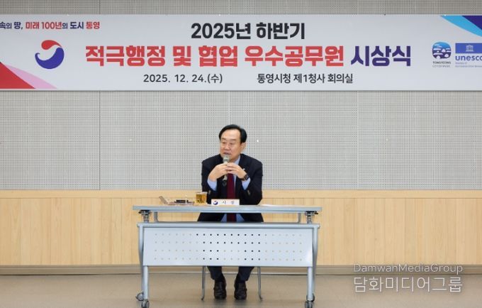 시민행정신문 강갑수 기자 | 통영시는 24일 제1청사 회의실에서 2025년 하반기 적극행정 및 협업 우수공무원 시상식을 개최하고,적극적인 문제 해결과 부서 간 협업을 통해 우수한 성과를 창출한 공무원과 부서를 시상했다.