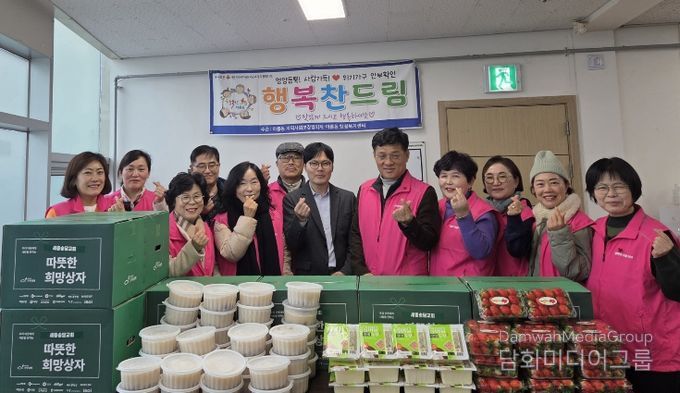 이인환 동장은 “건강한 한 끼를 챙겨 먹는 데 어려움을 겪는 저소득 가정에 도움이 되길 바란다”라며 “정기적으로 기부를 이어오고 있는 송담교회와 ㈜자모 콩이유의 지역돌봄에 감사드린다”고 말했다.