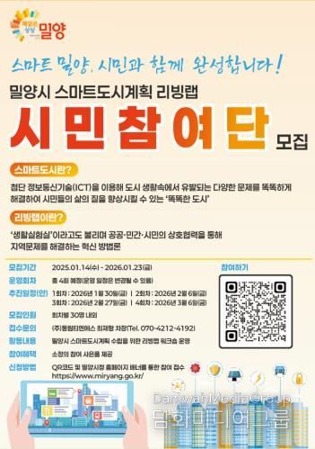 시민행정신문 강갑수 기자 | 경남 밀양시는 지역 내 다양한 도시문제 해결을 위한 ‘밀양시 스마트도시 리빙랩 시민참여단’을 1월 23일까지 모집한다고 밝혔다.