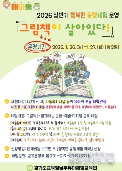 시민행정신문 기자 | 경기도교육청남부유아체험교육원이 유아와 아동의 문화·예술·디지털 교육 접근성 확대와 교육복지 실현을 위해 ‘2026 상반기 행복한 동행체험’을 운영한다.
