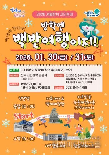 시민행정신문 강갑수 기자 | 익산시가 겨울방학을 맞아 지역의 역사와 문화를 함께 즐길 수 있는 시티투어를 운영한다.
