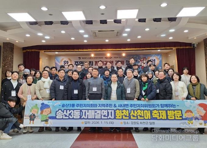 시민행정신문 강갑수 기자 | 의정부시 송산3동행정복지센터는 1월 15일 송산3동 주민자치회가 자매결연지인 강원특별자치도 화천군 사내면을 방문해 ‘2026 얼음나라 화천 산천어축제’의 성공적인 개최를 응원하고, 두 지역 간의 우호를 증진하는 시간을 가졌다고 밝혔다.