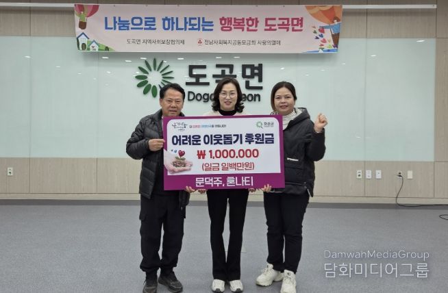 시민행정신문 강갑수 기자 | 도곡면은 지난 14일 관내에 거주하는 문덕주·혼나티 부부가 지역 내 어려운 이웃을 위해 100만 원을 도곡면 지역사회보장협의체에 기부했다고 밝혔다.