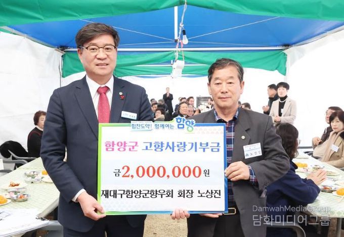 노 회장은 “축제의 열기로 가득한 고향 함양에서 기부를 실천하게 되어 매우 뜻깊다”라며, “함양의 맛을 나누는 기쁨과 더불어, 이 기부가 함양 발전에 작은 보탬이 되길 바란다”라고 소감을 전했다.